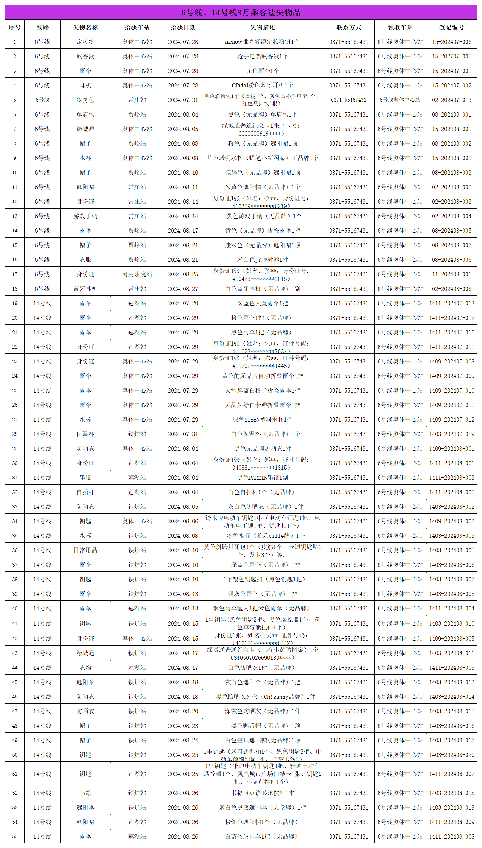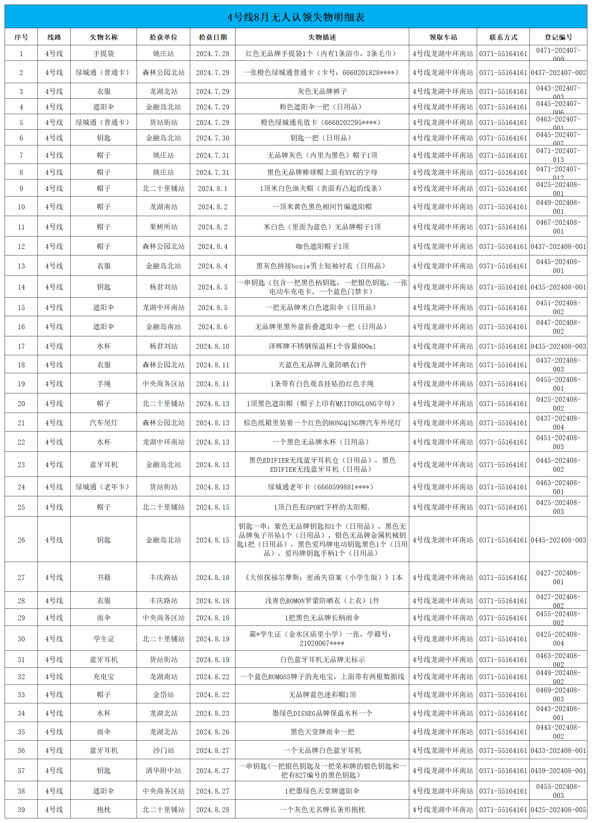2024年7月28日—2024年8月28日車站無(wú)人認(rèn)領(lǐng)失物情況